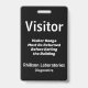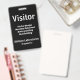 Visitantes Passam crachá no design preto e branco moderno. Todos os elementos podem ser alterados ou removíveis. Os elementos incluem: Visitante (pode dizer "convidado" ou "passe" ou outra palavra, a frase "Crachá do Visitante deve ser devolvido antes de sair do edifício, nome da empresa, departamento da empresa, verificação de código de barras de segurança está no verso e pode ser alterada ou removida. Disponível na orientação vertical. Slot no topo para o pátio.