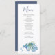 Estes designs personalizados de cardápio de casamento apresentam um polvo de aquarela e estrelas-do-mar em tons de azul. Use os campos modelo para adicionar seus detalhes personalizados. Uma escolha náutica para o seu tema de casamento na praia. Para mais baratos de ideias no menu de casamento, visite www.zazzle.com/dotellabelle Arte única do oceano de cor d'água por Victoria Grigaliunas do Do Tell A Belle.