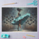 Folha de Papel Tecido de Decoupage Aqua Azul Pintado Poppies Mulher Bela Afro-Americana