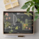 Design de trigo para desacoplamento ou embrulhamento de presente com pano de vidro e aterramento de vidro. Plantas e botânicos em verdes, pêssegos e pinks em fundo preto. Há até um pouco de pássaro azul e borboleta escondendo-se entre a folhagem. Adoramos esta design para uma estética de cottagecore ou boho decor!