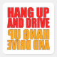Desligue e dirija o slogan do celular, em letras vermelhas de segurança e uma imagem espelhada invertida em laranja. Esteja seguro na estrada, faça do seu carro uma zona sem telefone celular e veja o trânsito.