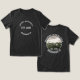 Este design frontal e traseiro apresenta o nome da despedida de solteira, ano e local em texto branco na frente e “equipe de acampamento do Colorado”, ano e local em texto branco no verso com um espaço para foto do local ou foto do grupo da festa de despedida de solteira. Perfeito para uma escapada para as montanhas ou uma festa de Bach com tema de acampamento para uma noiva que ama a natureza e todos os seus amigos.