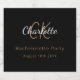 Para uma despedida de solteira elegante. Um fundo preto clássico. Personalize e adicione um nome e iniciais do monograma e a data. O nome é escrito em cor dourada com um estilo de letra manuscrita moderna. Letras brancas e douradas.