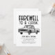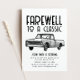 Se você ama simples, este simples convite de estilo é certo para você. O convite apresenta um design elegante, com um fundo branco e suave com um Caminhão Chevy vintage. No centro, os detalhes do partido são lindamente escritos em uma fonte de vintagem de blocos pretos, exuando um ar de sofisticação. Bem-vindos convidados e honrem sua aposentadoria, com este convite de festas de aposentadoria. A cor e o texto em segundo plano são editáveis.