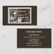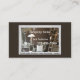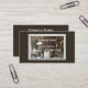 Cartão de visita com uma imagem com itens para a casa (você pode substituí-la pela sua própria imagem, se quiser!). O fundo é um castanho escuro com uma leve estrutura de canvas. Este cartão de visita é excelente para o varejista em designs residenciais, um designer de interiores ou qualquer pessoa que faça móveis ou remodele móveis.