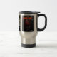 Uma caneca de viagem térmica com os logotipos do Night Shift: VSW core book, Night Companion e Elf Lair Games.
