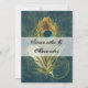 Celebre seu casamento em um tema de paz artístico e único e vintage com este belo convite de casamento e conjunto de acessório correspondente. Apresenta trabalho de arte de pintura na moda, rica e luxuosa de um detalhe de pena de pavão em cores de azul de cobalto, verde-claro e celadão. Fundo em azul-aqua escuro, com uma lavagem antiga e design suave. © 2010 www.CustomInvitesOnline.com Este item está disponível como uma coleção completa de casamento, incluindo convites, cartões RSVP, Salvar Datas, Magnets, Autocolantes, Cartões de Mesa, Planejamento de Casamentos e Binders de Álbum de Foto e Muito Mais!