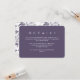 Cartão detalhado de convidado floral elegante e púrpura e branca apresenta um bonito padrão botânico e design de tipografia clássica. Compre esta coleção para coordenar convites para casamento!