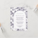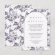 O cartão detalhado de convidado floral elegante e púrpura e branca apresenta um bonito padrão botânico e um clássico design de arte de tipografia. Compre esta coleção para coordenar convites para casamento!