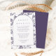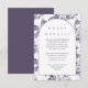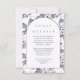 O cartão detalhado de convidado floral elegante e púrpura e branca apresenta um bonito padrão botânico e um clássico design de arte de tipografia. Compre esta coleção para coordenar convites para casamento!