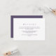 O cartão de convidado de casamento elegante e roxo e branco apresenta um simples design de tipografia limpa. Todas as cores são facilmente editáveis para suas próprias cores personalizadas!