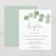 Um valor para o alternativo do ORÇAMENTO em tamanho menor de 4,5 x 5,6" de semirbrilho de 110 lbs, que é de espessura semelhante a um cartão postal (no entanto, não é adequado para uso como cartão postal). POR FAVOR, OBSERVE QUE HÁ UM convite por folha. Detalhes modernos da Recepção de casamento Eucalyptus. Um roteiro elegante para o título e o resto do texto que você pode personalizar facilmente com as elegantes folhas de eucalipto no topo.