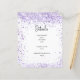 Um fundo branco decorado com poeira brilhante violeta, de cor lavanda. Personalize e adicione seus detalhes de casamento. Letras pretas coloridas.
