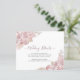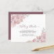 Detalhes de Casamento com Rosas Rosa Empoeirado e Creme - apresenta escrita à mão rosa empoeirado e elegante tipo de letra preto com rosas rosa pálido e folhas secas bege creme. O verso deste Cartão de Detalhes de Casamento romântico é rosa empoeirado.