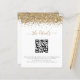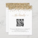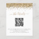 Um valor para alternativo do ORÇAMENTO em um tamanho de 4,5 x 5,6 pol de semirbrilho de 110 lbs, que é de espessura semelhante a um cartão postal (no entanto, não é adequado para uso como cartão postal). POR FAVOR, OBSERVE QUE HÁ UM convite por folha. Detalhes de Casamento de Código QR do Código de Glitter Dourado de Orçamento. Uma borda falsa com brilho na parte superior de ambos os lados com um script elegante com traços para o cabeçalho. Troque o seu código QR para o seu website de casamento por uma forma conveniente para que os seus convidados vejam todos os detalhes de que necessitam. Para criar um código QR, pesquise online "gerar um código QR"