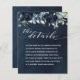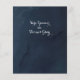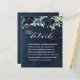 Peões azuis de sumário marinho em cascata entre verde azul-prateado empoeirado contra fundo aquoso de marinho escuro com caligrafia de fonte branca de rico anunciando seu casamento.