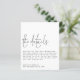 Gabinete de Detalhes do Casamento Branco Preto. Um alternativo de 4,5 pol x 5,6 pol com preço inferior. Disponível em um STOCK DE CARTÃO SEMI-GLOSS 110 lb, que é a opção padrão (mais espesso para convites), OU um STOCK de PAPEL THINNER FINISH 80 lb FINISH (ideal para gabinetes). Os envelopes são um extra opcional e são ligeiramente maiores que o tamanho da placa. O cabeçalho está em um estilo elegante de escrita manual com os detalhes abaixo e muito espaço em branco em forma quadrada para um estilo contemporâneo. Personalize facilmente com seus próprios detalhes.