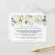 Watercolor Ivory White Floral Greenery Dusty Blue Wedding Details Insert Card inclui rosas brancas de marfim e verde botânico.