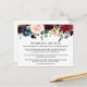Detalhes do Casamento Floral Azul da Cloridícula Elegante Moderna Detalhes do Inserir Cartão inclui rosas burgueses, rosas cor-de-rosa, flores vermelhas, flores azuis, folhas de eucalipto e verde botânico.