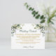 Pormenores do Casamento Botânico Elegante Moderno Verde Botânico Inserir Cartão inclui folhas de eucalipto, folhagem botânica verde, folhas azuis empoeiradas e outros belos lençóis botânicos. Dourado Script.