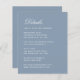 Um simples cartão de detalhes de casamento, apenas um texto branco sobre fundo azul empoeirado. O título Detalhes (que pode ser alterado) é escrito em um script caligráfico elegante.