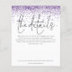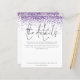 O Casamento Pormenoriza O Compartimento De Confetti Com Glitter Roxo. Um alternativo de 4,5 pol x 5,6 pol com preço orçamentário para que seus convidados saibam todos os detalhes. Disponível em um STOCK DE CARTÃO SEMI GLOSS 110 lb, que é a opção padrão (recomendada para convites), OU um STOCK DE PAPEL THINNER SATIN FINISH 80 lb (ideal para gabinetes). Os envelopes são um extra opcional e são ligeiramente maiores que o tamanho da placa. Avise aos seus hóspedes os detalhes como instruções e informações de alojamento para o seu casamento quando enviar os convites. Este design elegante definiu na moda grande tipografia para o título Os detalhes e o resto do texto podem ser facilmente personalizados para suas palavras. Uma borda de falso roxo está no topo de ambos os lados. Você pode escolher qualquer cor de sua escolha para o texto e as cores de fundo em ambos os lados, por meio da opção personalizar mais.