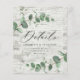 orçamento Belo delicado cartão de detalhes do casamento de folhagem de eucalipto. Uma coleção moderna. Cinza de luz de celeiro rústico moderno lavava madeira design.