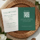 Mantenha seus hóspedes informados em estilo com este Cartão de Detalhes do Casamento Verde Sage, com um código QR personalizado e um design minimalista elegante. Perfeito como uma inserção de convite, este cartão fornece detalhes essenciais como acomodações, roupas ou seu site de casamento — tudo facilmente acessível por meio de digitalização. O roteiro refinado e a paleta de cores de sábio suave adicionam um toque romântico e moderno que se emparelha maravilhosamente com o seu pacote de casamento de cheios. Uma maneira pensativa e funcional de guiar seus convidados enquanto mantém seu eterno de papelaria e coeso.