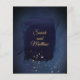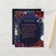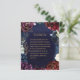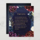 Um convite de casamento de marinho burguês, com uma montagem de flores azuis marinhos e burgundy com verde de eucalipto e elementos de ouro que fazem o convite brilhar.