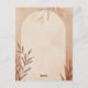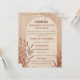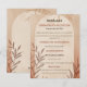 Detalhes do cartão de casamento espanhol com arco de terracota e desenho de ramo de oliveira. Compartilhe informações sobre a cerimônia, recepção e evento.