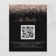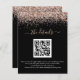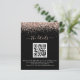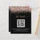 Um valor para o alternativo do ORÇAMENTO em tamanho menor de 4,5 x 5,6" de semirbrilho de 110 lbs, que é de espessura semelhante a um cartão postal (no entanto, não é adequado para uso como cartão postal). POR FAVOR, OBSERVE QUE HÁ UM convite por folha. Detalhes do Casamento Preto do Código QR do Código da Glitter Dourado do Rosa de Orçamento. Uma borda falsa com brilho na parte superior de ambos os lados com um script elegante com traços para o cabeçalho. Troque o seu código QR para o seu website de casamento por uma forma conveniente para que os seus convidados vejam todos os detalhes de que necessitam. Para criar um código QR, pesquise online "gerar um código QR"