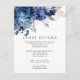 Cartões de detalhes de casamento com flores azuis e rosas com acentos de prata.