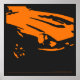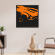 Desenho original de uma cor de um Detalhe Datsun 240Z em laranja sobre um fundo preto-carvão.