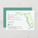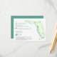 Projetado para coordenar com a minha coleção de casamentos tropicais, esta elegante carta de detalhes de hóspedes à beira-mar apresenta uma barqueira lateral do mapa da Flórida em tons de verde e azul-turquesa com ícones de aquarela de um copo-coquetel, flamingo rosa e tartaruga-do-mar com os detalhes do seu casamento. Adicione seu texto personalizado usando os campos fornecidos e use a função Personalizar para ajustar a localização, fontes, tamanhos e espaçamento do coração. Para ver designs de casamento de destino coincidentes visite www.zazzle.com/dotellabelle Trabalho de arte e design por Victoria Grigaliunas