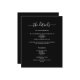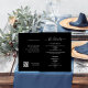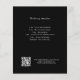 Um moderno e elegante programa/programa/cronograma de casamento. Um fundo negro. Personalize e adicione seus nomes e detalhes do casamento. Letras brancas coloridas. Texto de ambos os lados. Adicione o URL do seu site de casamento ao código QR. 1 folha = 1 programa impresso borda a borda.