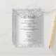 Um moderno e elegante programa/programa/cronograma de casamento. Um fundo com aspecto fino de prata decorado com brilho falso de prata, faíscas. Personalize e adicione seus nomes e detalhes do casamento. Letras pretas coloridas. Texto de ambos os lados. 1 folha = 1 programa impresso borda a borda.