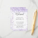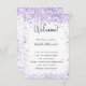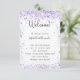Um programa de casamento moderno e elegante, linha do tempo. Um fundo branco decorado com violeta, confete colorido de lavanda. Personalize e adicione seus nomes e detalhes do casamento. Letras pretas coloridas. Se você tiver mais texto, é possível reduzir o espaço na linha.