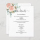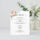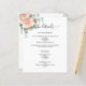 Um moderno e elegante programa/programa/cronograma de casamento. Um fundo branco, decorado com rosa dourado, rosa de cor aquosa e verde de eucalipto. Personalize e adicione seus nomes e detalhes do casamento. Letras pretas coloridas. Texto de ambos os lados. Adicione o URL do seu site de casamento ao código QR. 1 folha = 1 programa impresso borda a borda.