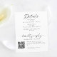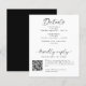 Elegante, mínimo e simples convite de casamento orçamental "Feliz Nunca Depois". O verso contém detalhes de recepção e detalhes de RSVP com um código QR.