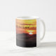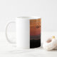 Uma caneca com uma foto do nascer do sol do Tennessee entre montanhas majestosas com a frase 'Deus acredita em você'