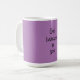 Uma caneca com a frase "Deus acredita em você" em um fundo roxo