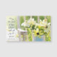 "O Deus da Esperança enche-o de alegria e paz" Romanos 15:13 Bíblia Verse Quote Magnet Inspiracional com uma bela margarida amarela e fotografia de flor de olhos negros com luz do sol brilhando sobre um buquê em um vaso azul claro sentado sobre uma poltrona branca rústica e lavada contra um pano de fundo verde esverdeado. Lindo ímã de fotografia vibrante, com uma citação motivacional inspiradora na elegante tipografia moderna da escrita. Excelente para uma mini meditação em casa ou no escritório. Selecione a opção de adicionar um mini envelope fofo para um item de presente de excelente.