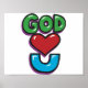 Esta design é uma para mostrar que Deus te ama. Diz que Deus te ama com a palavra Deus sobre o coração do amor e depois a letra. Este deus ama você design parece excelente nesta Poster