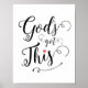 Design de tipografia com elegante caligrafia e glifos com palavras em preto, "Deus tem isso." O Coração Vermelho substitui o I na palavra "isto".