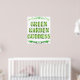 Deusa do Jardim Verde dizendo em letras decoradas e vítreas em tons de verde e amarelo.