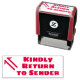 Este design de carimbo básico apresenta a mensagem "Devolver gentilmente ao Remetente", juntamente com uma forma de seta decorativa. Pode ser utilizado para indicar que o correio postal recebido foi entregue no endereço errado e deve ser devolvido ao remetente.