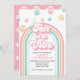 Dez é um convite de aniversário de 10 anos inspirado no arco-íris retrô com fontes e cores estilo anos 70.