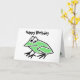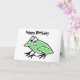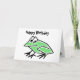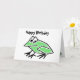O cartão de aniversário feliz do sapo Hilarious diz Feliz Aniversário lá fora e diz: Espero que consiga algo especial de dentro. Tem uma mosca rastejando sobre as letras. Bonita e divertida.