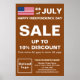 Feliz Dia da Independência! Feriado para celebrar e sentir liberdade. É também um dos feriados do ano para anunciar sua empresa. Poster personalizável com vendas no dia da independência, seu nome comercial e outras informações. Poster que você pode usar como material de marketing para atrair mais clientes. Personalize-o e use-o para convencer mais clientes a comprar de seus produtos ou clientes para que gostem de seus serviços neste dia de independência. As cores e formas design são textos castanhos-claros e brancos sobre fundo castanho e forma retangular de formato de retrato. O conteúdo é a bandeira, 4 de julho, Dia da Independência Feliz, venda, desconto percentual que você oferecerá, datas de venda, seu nome comercial, logotipo, endereço, número de telefone, e-mail e site ou sua página de mídia social. Verifique a aparência após carregar o logotipo e digitar textos. Se a aparência lhe agrada, você pode colocar seu pedido agora. Se você precisar redimensionar e mover o logotipo e os textos para o ajustado neste poster ou em outro tamanho, forma e estilo apropriados que você escolherá, mude na ferramenta design. Você também pode fazer outras alterações na ferramenta design de acordo com a aparência deste poster, que você prefere, como alterar a cor do fundo, a cor da fonte e o estilo da fonte. Feliz Dia da Independência! Sinta a liberdade! Desejando mais vendas neste feriado.