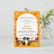 Este convite é ideal para um aniversário combinado e para uma comemoração de Ação de Graças! Seu leve pano de fundo laranja é adornado com um encontro alegre de crianças e outros elementos temáticos do outono, criando um ambiente acolhedor e acolhedor.